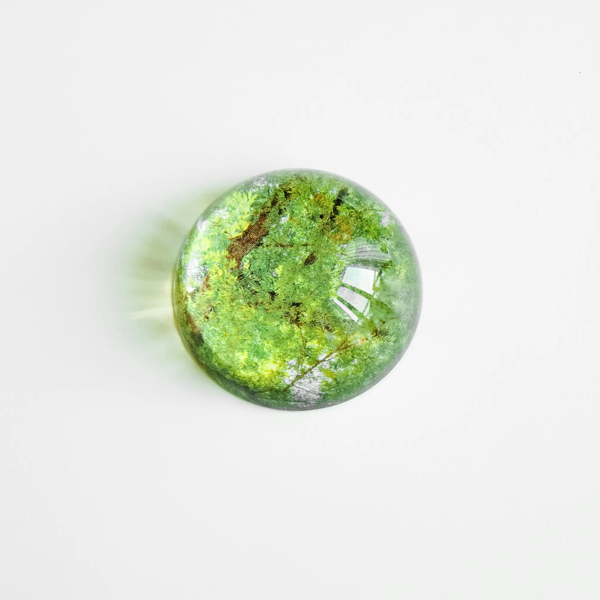 나무의 초록빛을 머금은 유리 소재의 반구 문진입니다. 나무 한그루로 나의 주변을 숲으로 만들어 보세요.