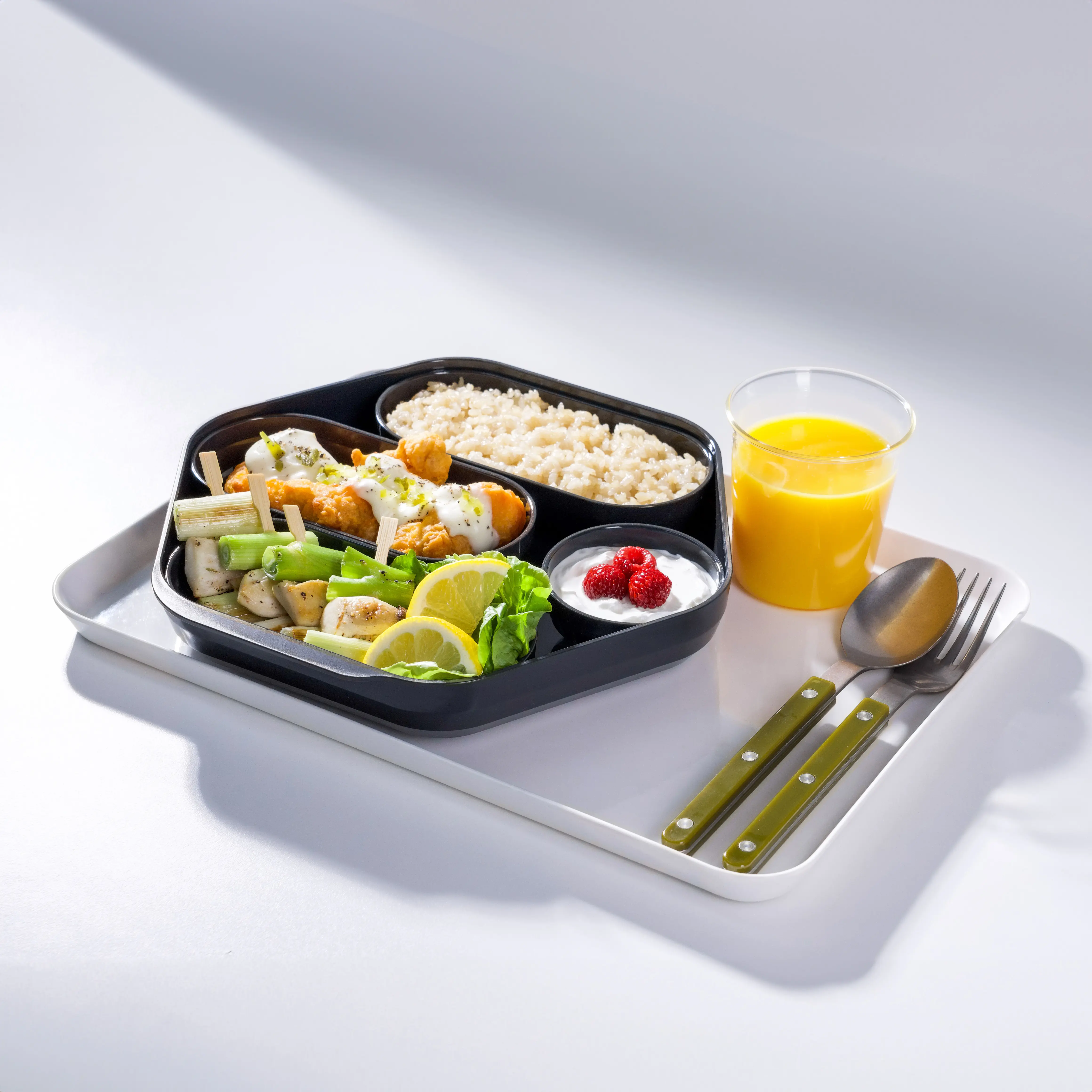PLATE 07은 메인용기 안에 1구, 2구, 4구 크기의 내부용기를 원하는 조합으로 구성하여 여러가지 메뉴를 담을 수 있습니다.