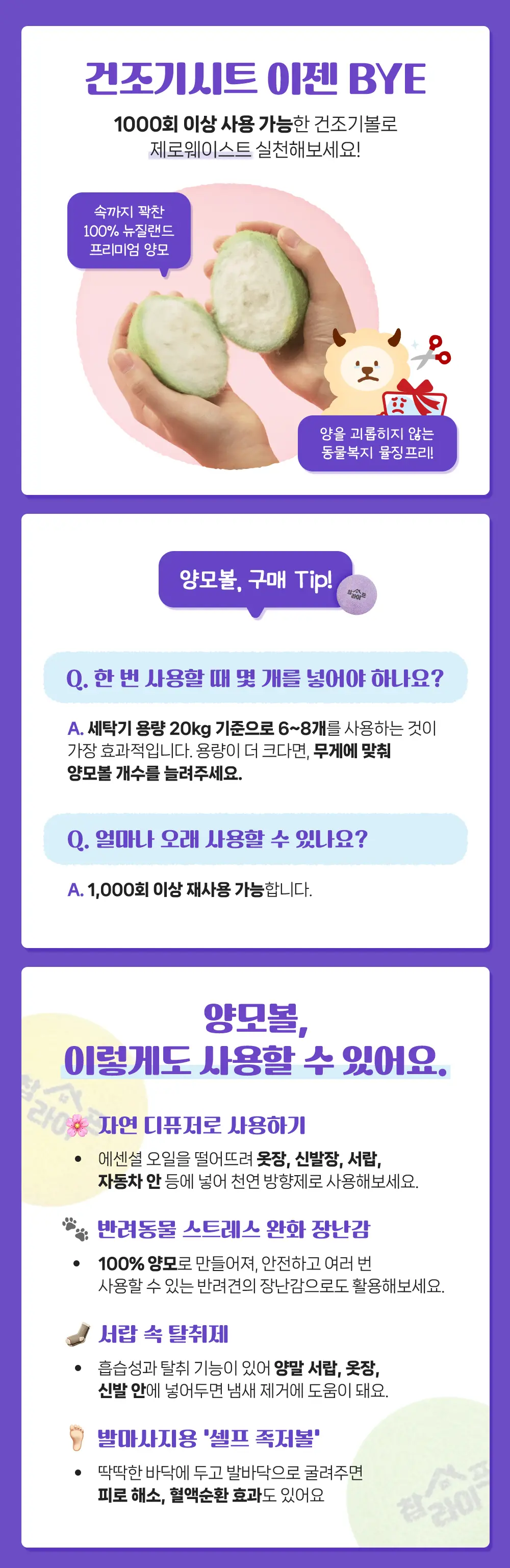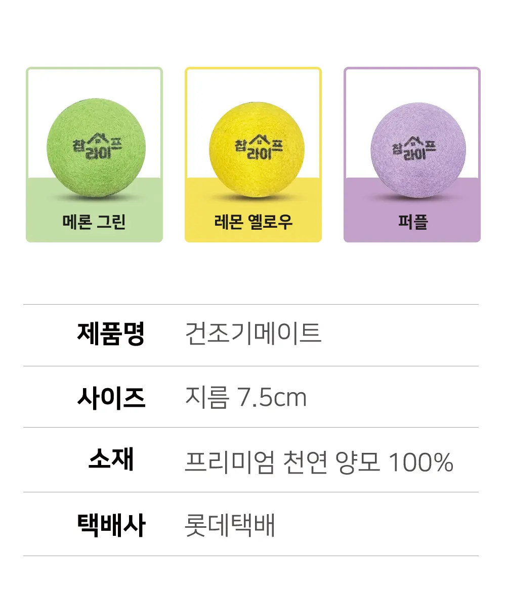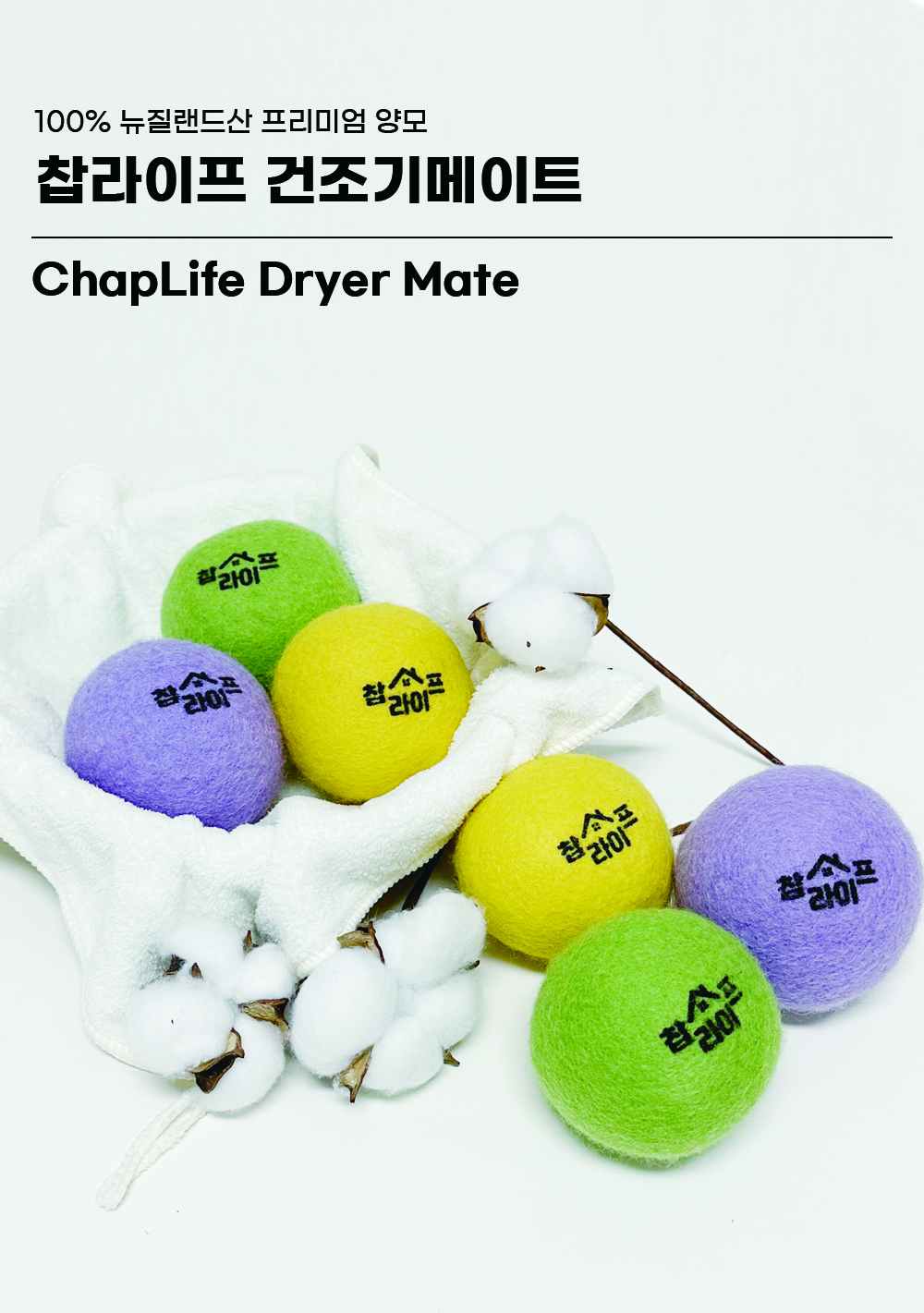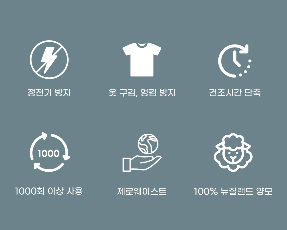 동물복지 " 뮬징프리 " 인증 된 천연 양모 건조기볼 구김방지, 정전기방지, 전기세 절약을 한번에 해결 가능한 상품