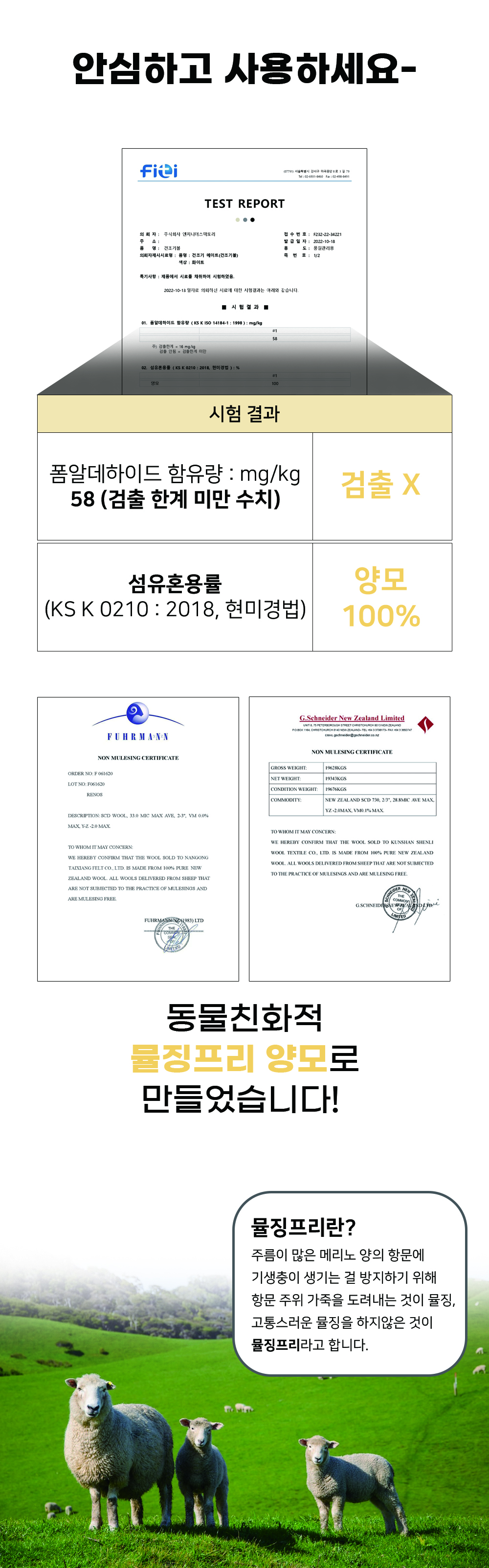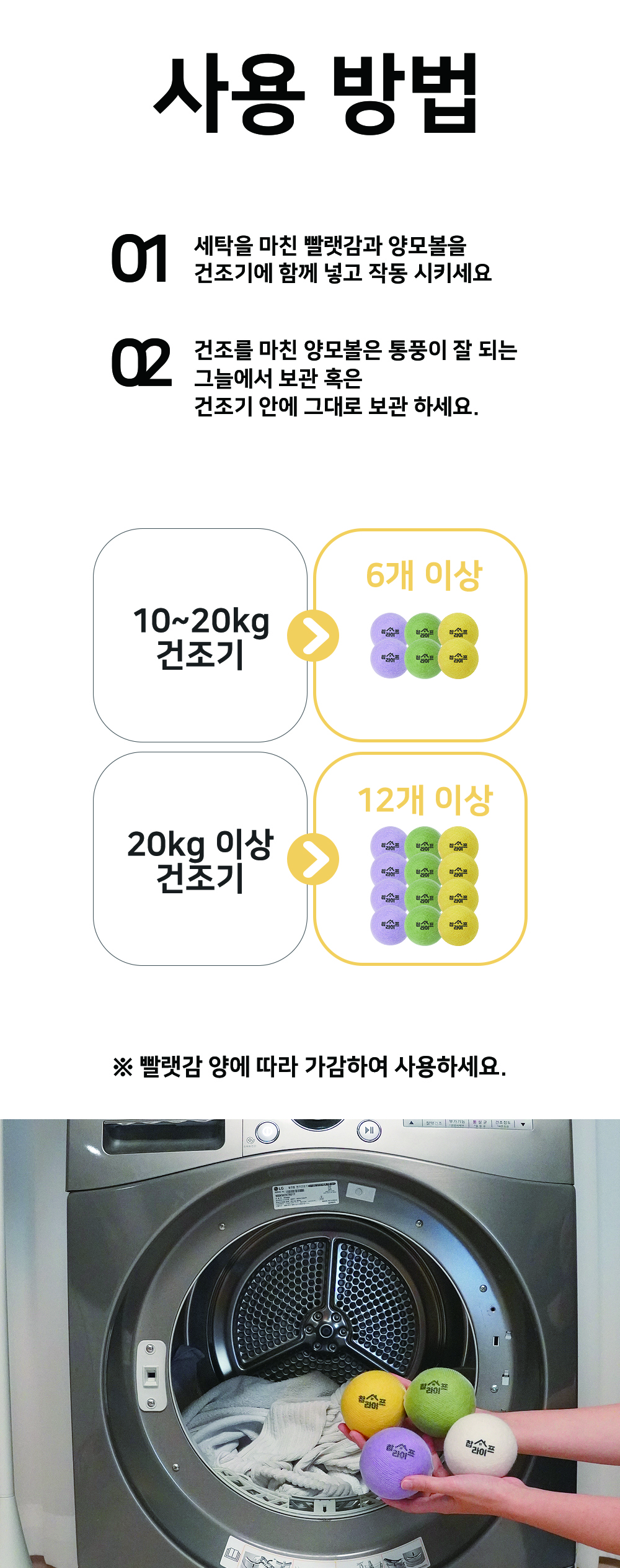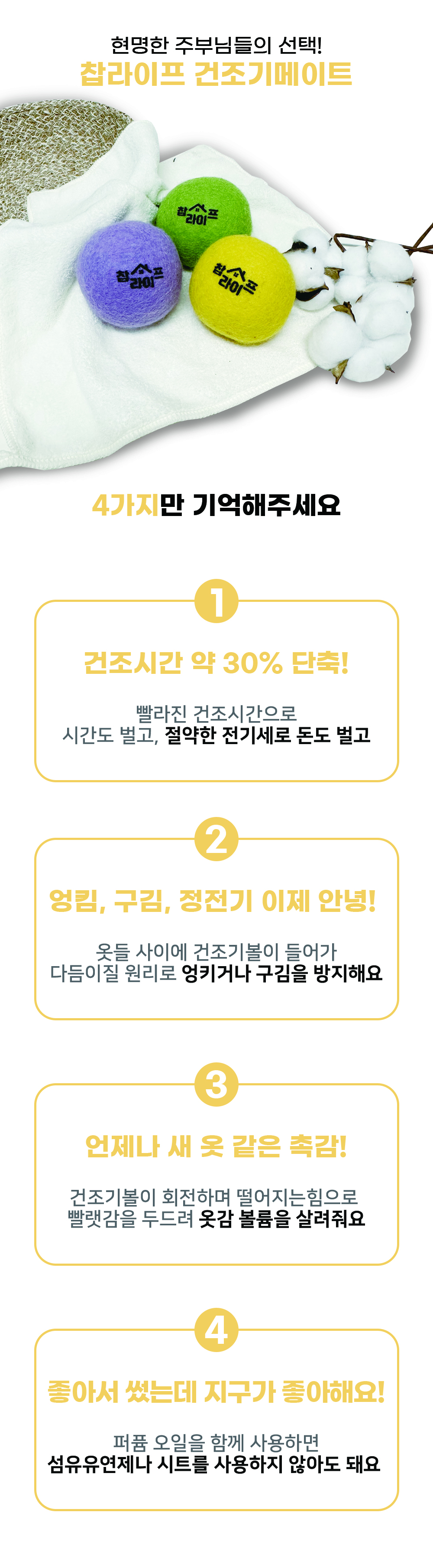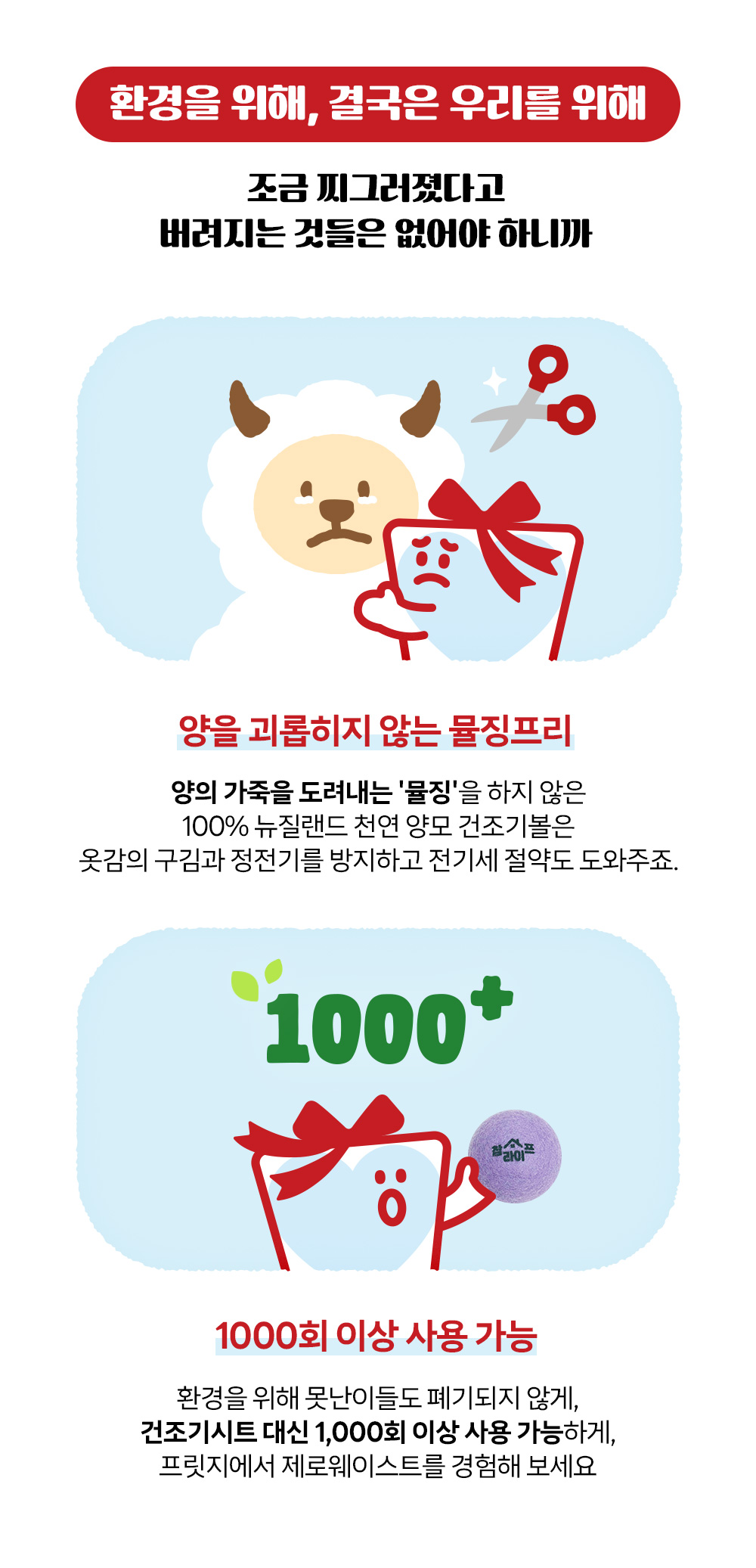 동물복지 " 뮬징프리 " 인증 된 천연 양모 건조기볼 구김방지, 정전기방지, 전기세 절약을 한번에 해결 가능한 상품