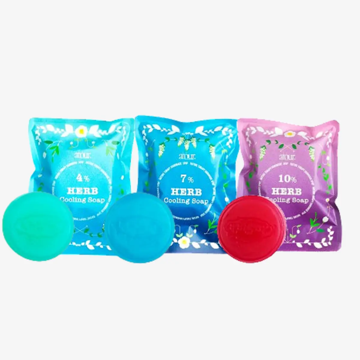 쿨링솝 4% : 멘톨 비누 입문단계 -> 멘톨비누를 처음사용하시거나 피부가 연약한 여성분들 물링솝 7% : 쿨링솝 4% 지나 좀 더 강력한 시원함을 원하시는 고객님 쿨링솝 10% : 평소 운동을 즐겨하시거나 야외 활동을 주로 하시는 분들 중 7%보다 더 강력한 시원함을 원하시는 고객님들.