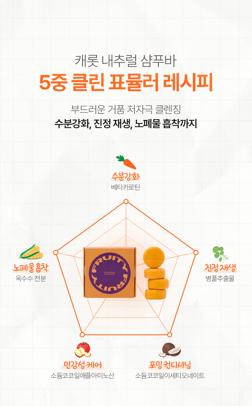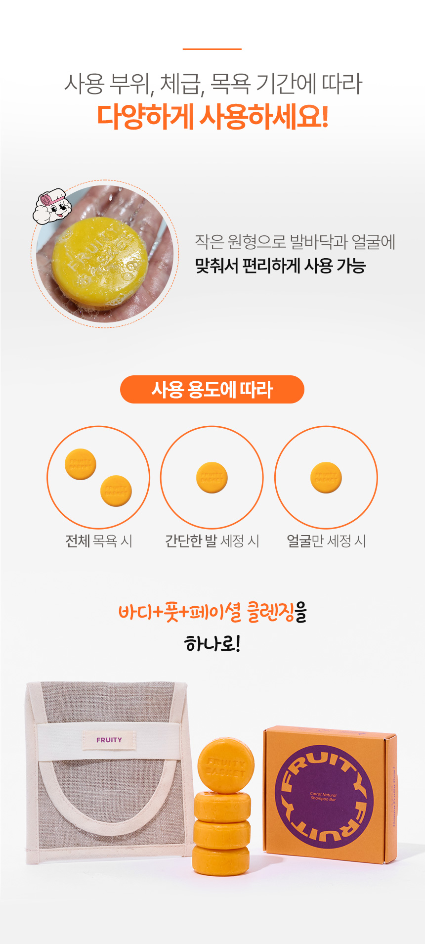[프루티바스켓] 캐롯 내추럴 펫 샴푸바, 제주당근 반려동물 올인원 샴푸