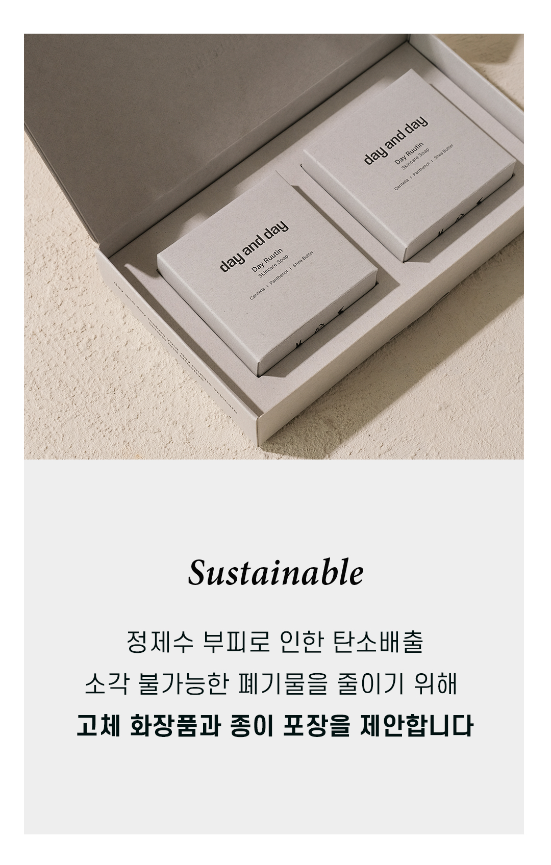 100% 재생종이로 만든 비코팅 단상자 포장 사용합니다