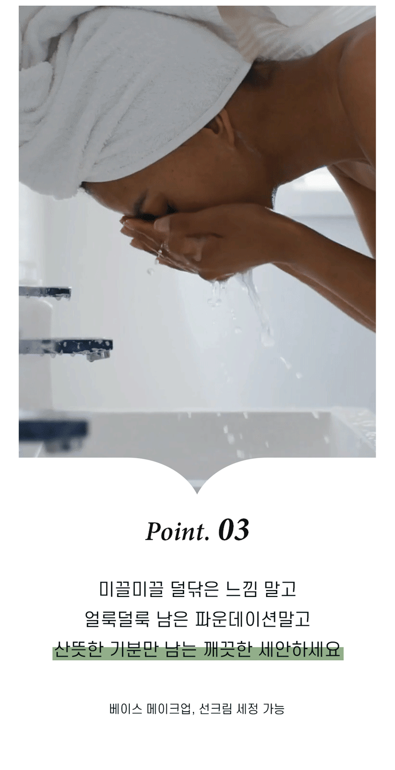 - 피부를 건조하게 하는 2중세안 하지 마세요. 스킨케어솝은 베이스메이크업까지 한번에 세정 가능합니다