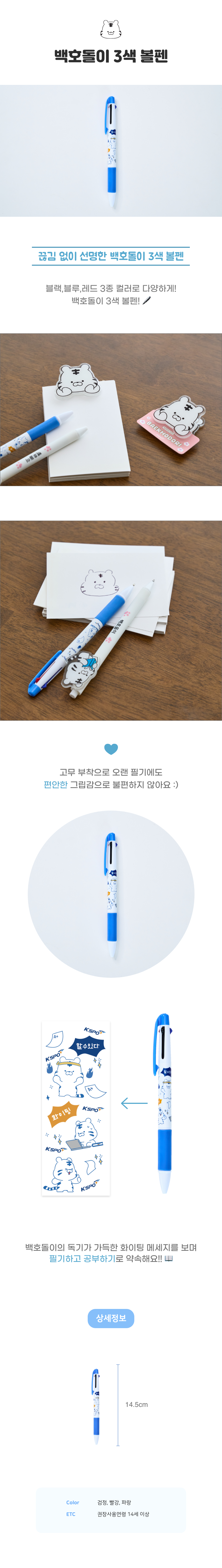 [로컬러] 귀여운 캐릭터 3색 펜, 백호돌이 데일리 펜