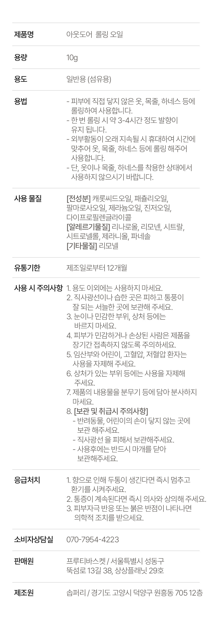 [프루티바스켓] 아웃도어 롤링 펫 오일, 해충방지 산책필수템