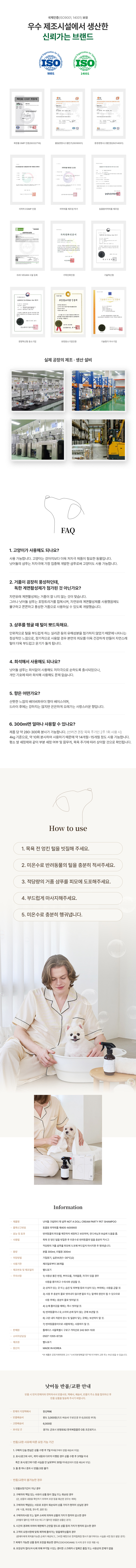 [낫어돌] 크림 파티 펫 샴푸, 반려견 반려묘 저자극 올인원 샴푸, 촉촉 보습 크리미 거품