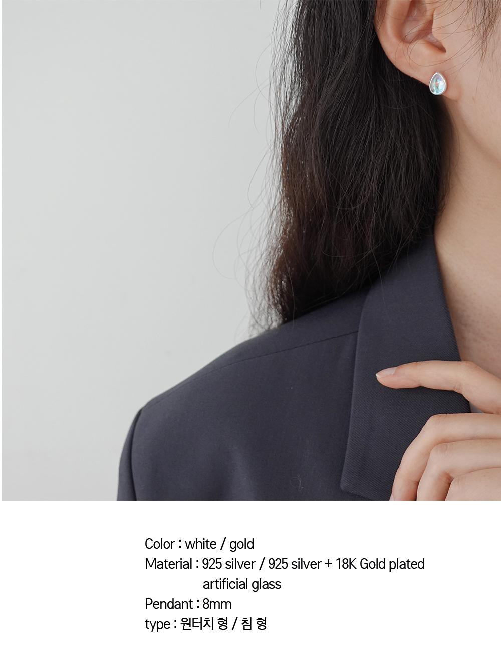 silver925 특성상 물에닿아도 변색없지만, 땀과 같은 염분에 주의해주세요. 강한 힘을 가하면 부러질 수 있습니다.