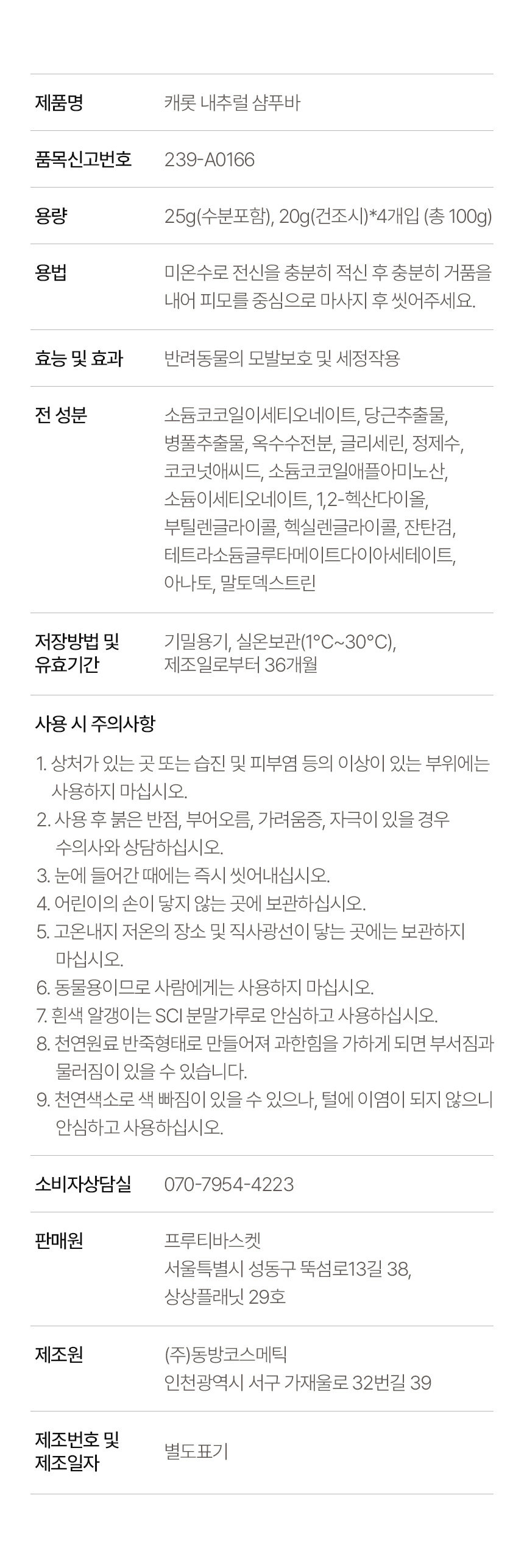 [프루티바스켓] 캐롯 내추럴 펫 샴푸바 세트, 반려동물 올인원 샴푸