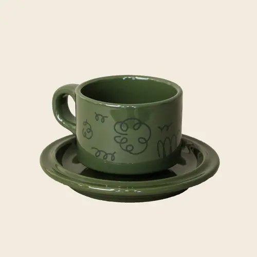 두꺼운 도자기 소재의 컵에 아이의 이야기를 담은 패턴을 입혔습니다.