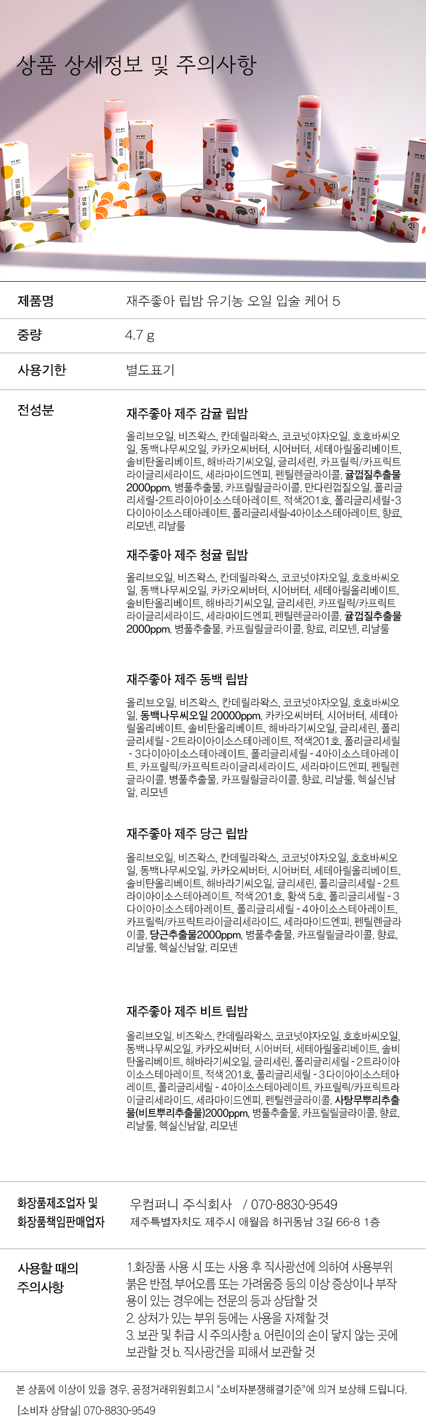천연 제주에서의 원료를 사용한 립밤입니다. #청귤립밤 #감귤립밤 #동백립밤 #당근립밤 #비트립밤