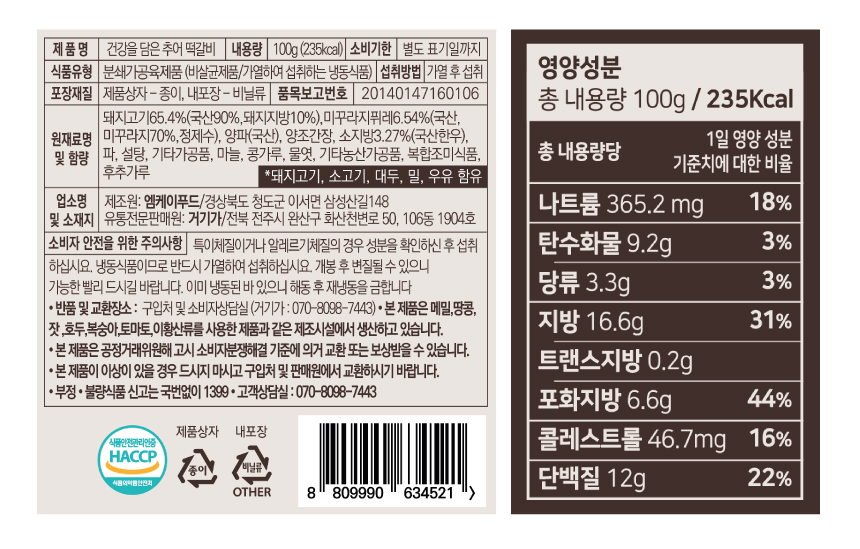 분쇄가공육제품(비살균제품/가열하여 섭취하는 냉동식품)