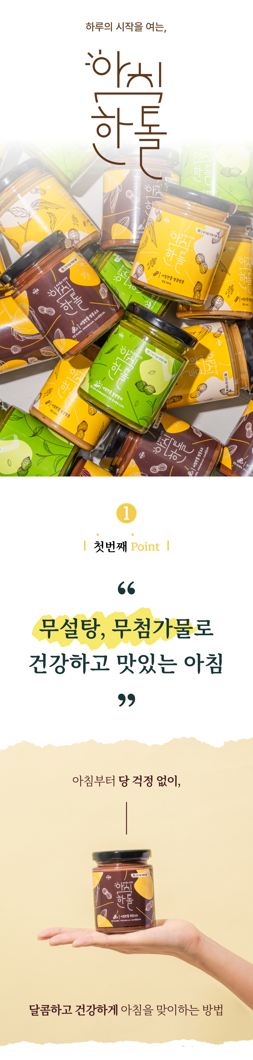 단맛은 그대로, 설탕 대신 건강한 선택! 첨가물 없이 순수하게 건강한 재료들로만 가득 채워, 당에 민감한 당뇨 환자 혹은 다이어터들이 인정한 스프레드예요:)