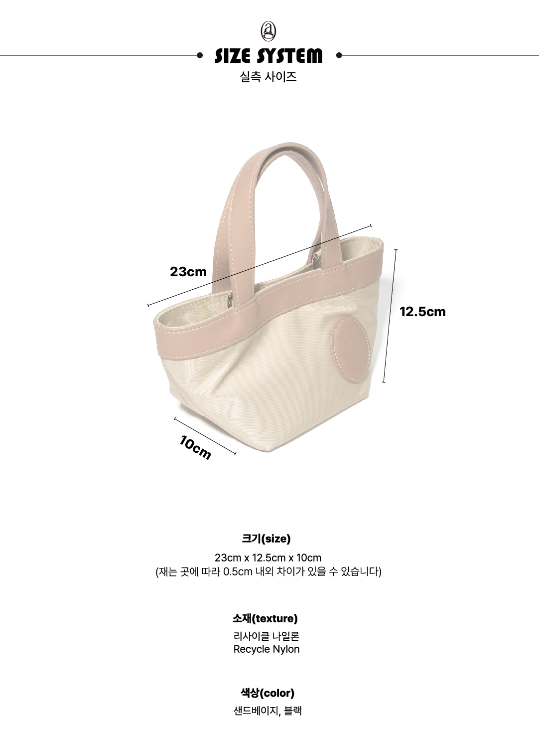 - 23X12.5X10cm (가로X세로X폭) - 재는 곳에 따라 0.5cm이내 차이가 있을 수 있습니다.